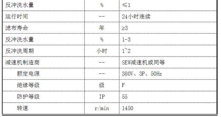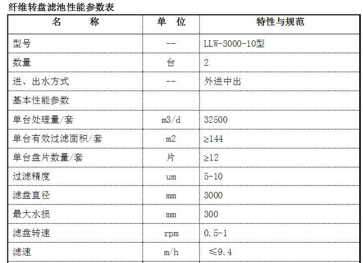 纤维转盘滤布滤池过滤器装置技术要求: